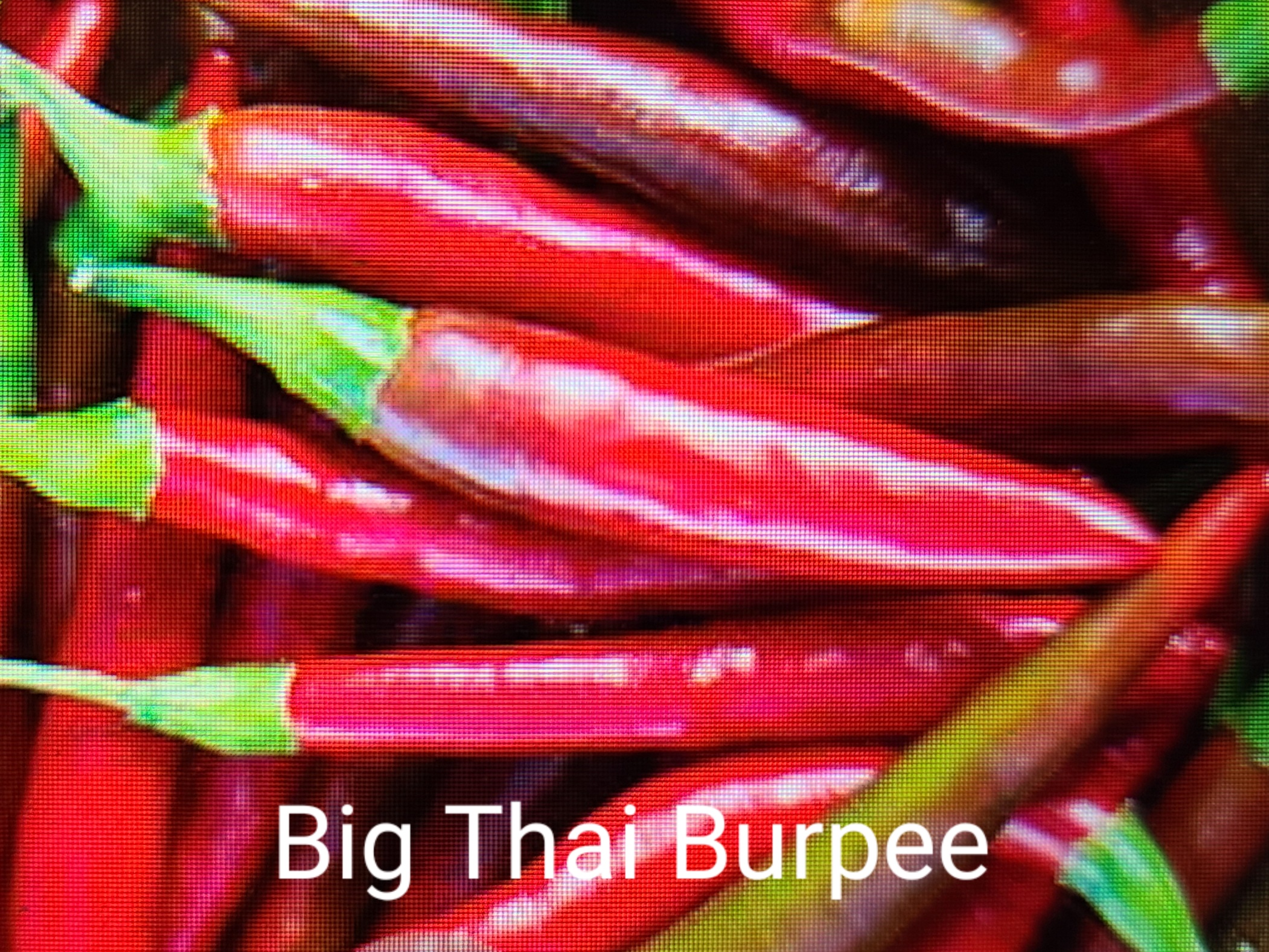 “Medium hot, 4-5″ fruits on 30″ plants mature quickly from green to dark red and dry fast on the plants. Harvest about 69 days after plants are set outside. Tie several peppers on a long string to hang for drying.” Seeds, picture and text from Burpee.