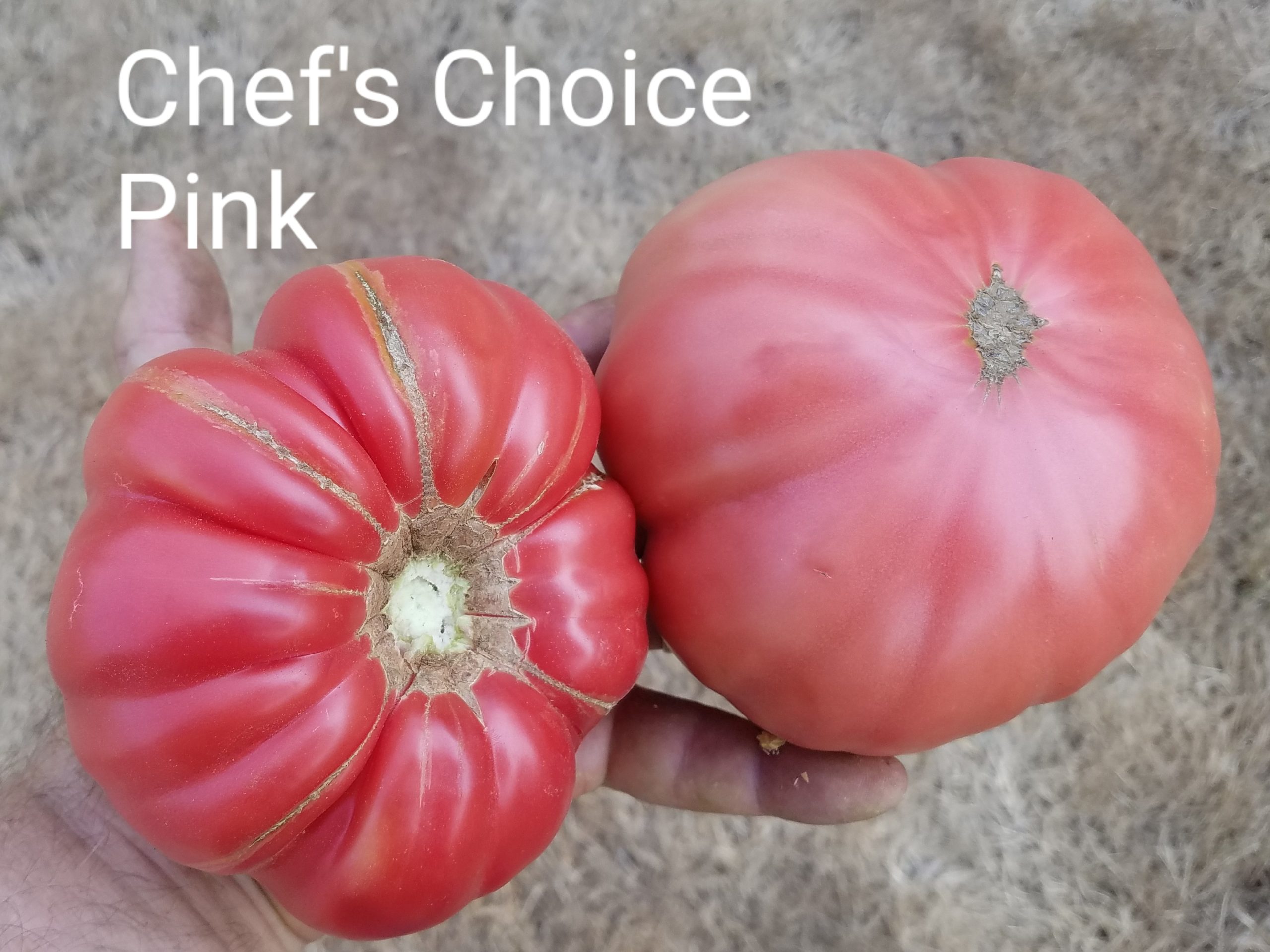 Chef’s Choice hybrid varieties appear to offer hybrid vigor, uniformity and disease resistance with the old-time tomato flavor all tomato lovers seek after. The pink version yields 12 to 16 ounce slicers with firm, good tasting fruits.