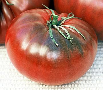 “Craig LeHoullier stabilized this rogue heirloom originating from the popular old heirloom from Tennessee, Cherokee Purple. This 4-inch beefsteak variety has developed a great following among celebrity chefs because of its exceptionally rich tomato flavors and wonderful chocolate mahogany color.” Text from TomatoFest Picture from Tomato Growers Supply.