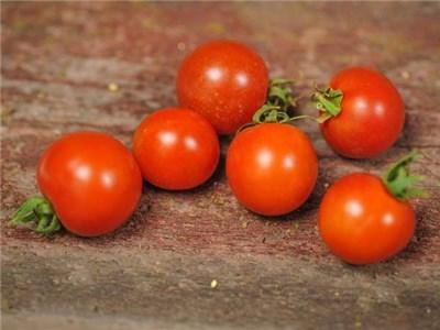 Seeds of Change 2005 catalog reads, “RARE 1.5 oz.. One of the finest cherry Tomatoes we’ve found. Tall vines bear large red cherries with rich, full-bodied, mildly acidic flavor. Incredibly prolific indeterminate vine.” Picture from Baker Creek Heirloom Seeds.