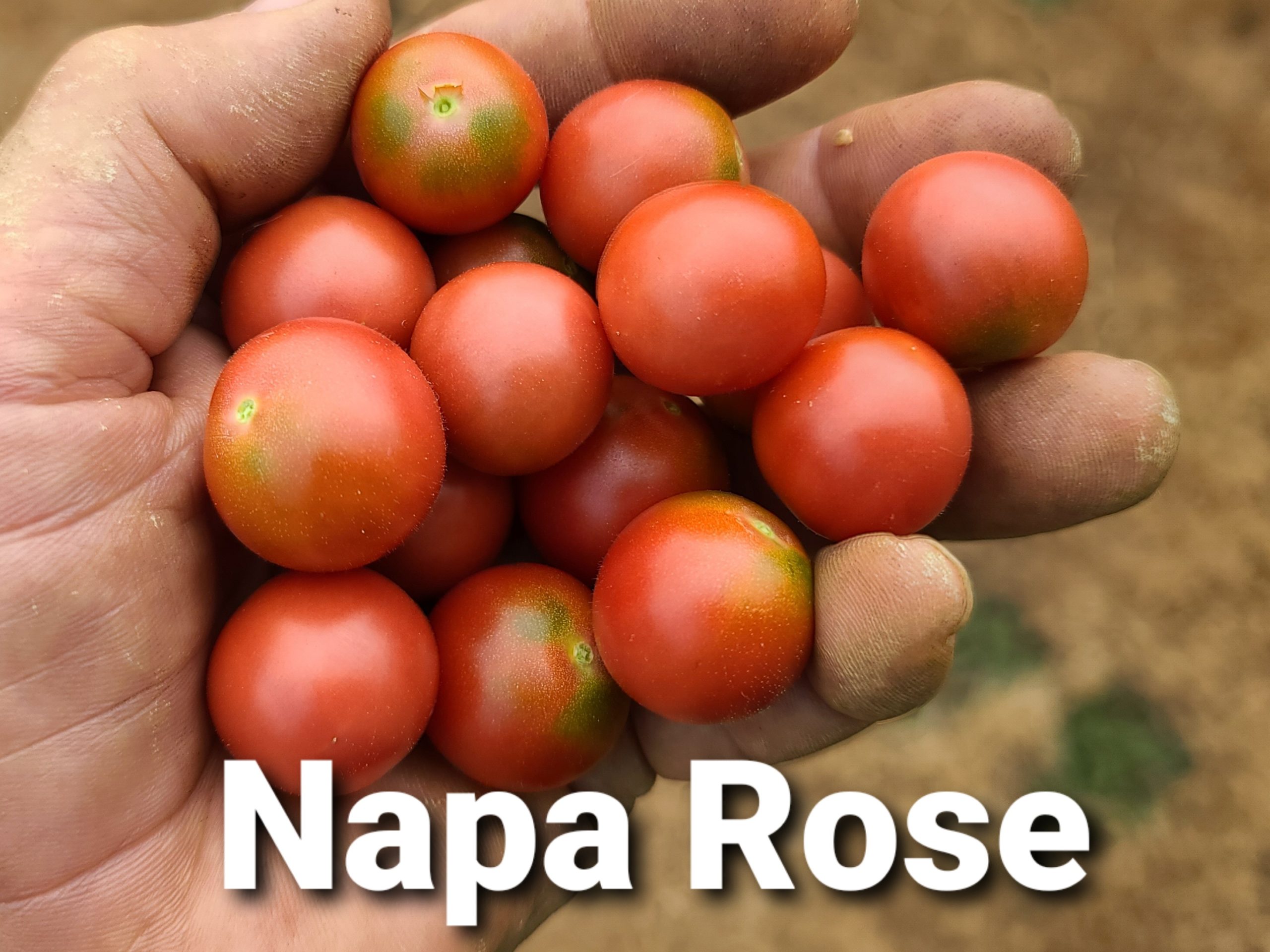 Very productive and unique pink cherry tomato. Great looking with a very good flavor that is sweet rich. Everyone who trialed it was pleased. Another variety that has exceptional hang on the vine quality and can be harvested by cutting the entire cluster off, making for a very pretty and unique look. Early and does will in cool and hot conditions for me. Text from Wild Boar Farms.