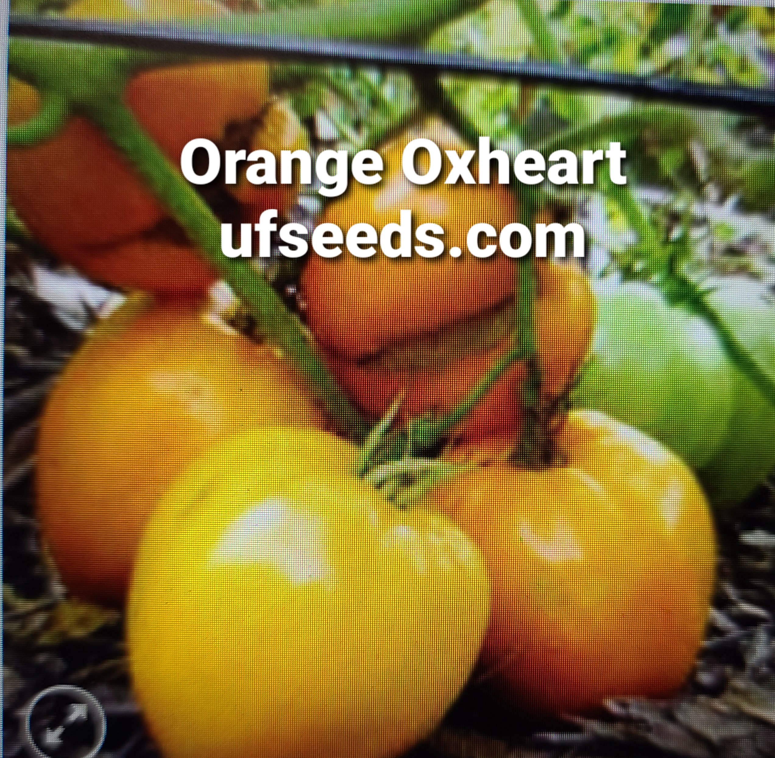 “The Orange Oxheart Tomato is an oxheart variety that has vigorous vines that produce plenty of beautiful, orange tomatoes. These tomatoes have a sweet and juicy flavor that will have you growing them for years and years to come! The Orange Oxheart weighs around 16-32 ounces and is just perfect looking!” Picture and text from ufseeds.com.