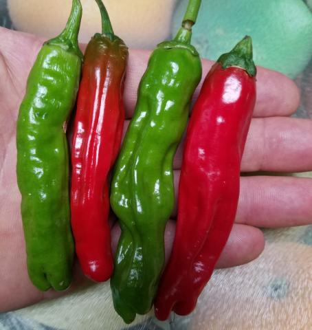 This is the Japanese equivalent to Pimiento de Padron, but with less heat. 3-4” wrinkled pods with thin flesh cook quickly and are excellent for tempura and stir-fries. Usually used while green, will ripen to bright red.